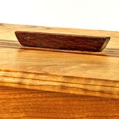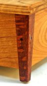 Decorative Leopardwood handle on top. Tapered Leopardwood Maple legs. Sides are 3/8 " (9.5 mm) thick Cherry. Top is made from Cherry about 1/2" (13 mm) thick, with inlaid accent woods. |