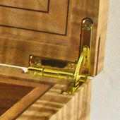 | Top is made from solid woods into an assembly about 1/2" (13 mm) thick. It is then re-sawn into two pieces about 1/8" (3mm) thick which are laminated to both sides of 1/4" (6 mm) plywood. This construction not only makes the interior of the top as attractive as the exterior, but also prevents warping of the top. | ||