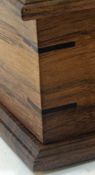 The sides are made from a single board with waterfall mitre joints. That allows the natural pattern of the wood grain to flow all the way around the urn. Grain is matched on three corners.